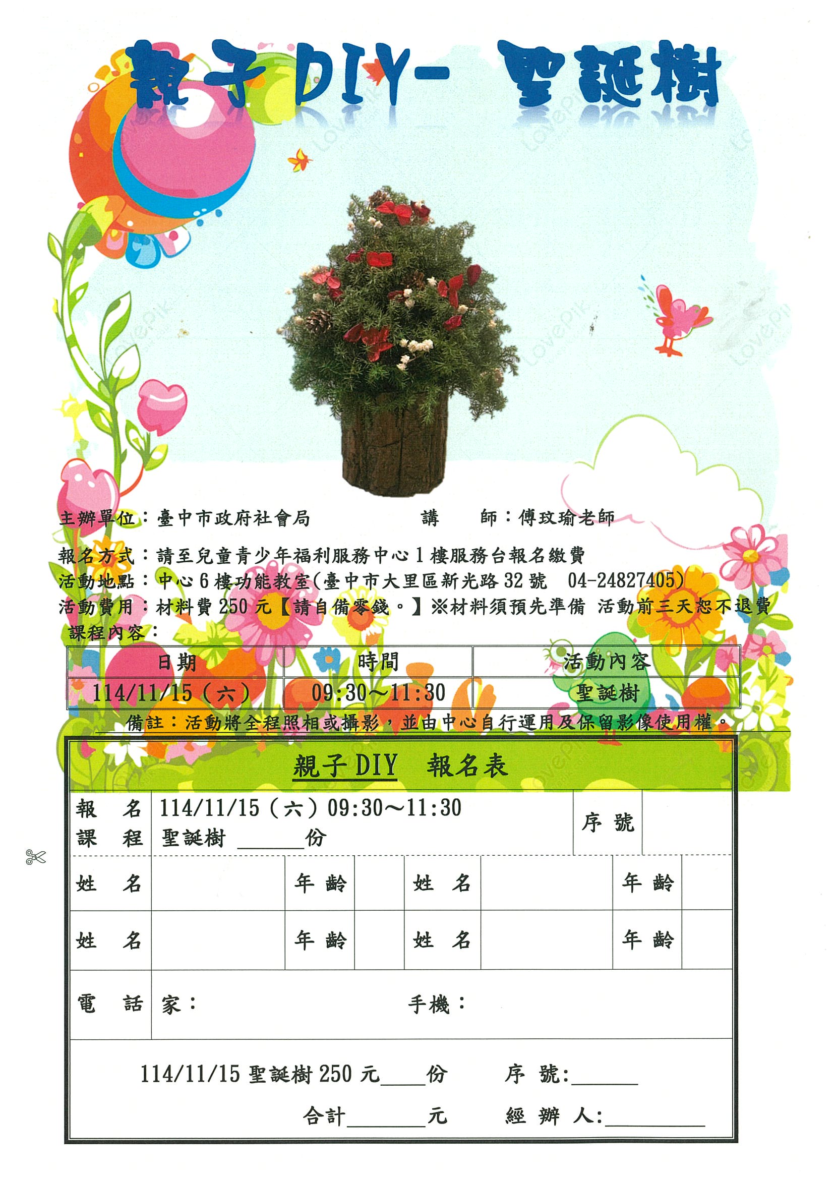 👪【親子DIY】114年11月15日 🌲聖誕樹🌲 👉開始報名囉!