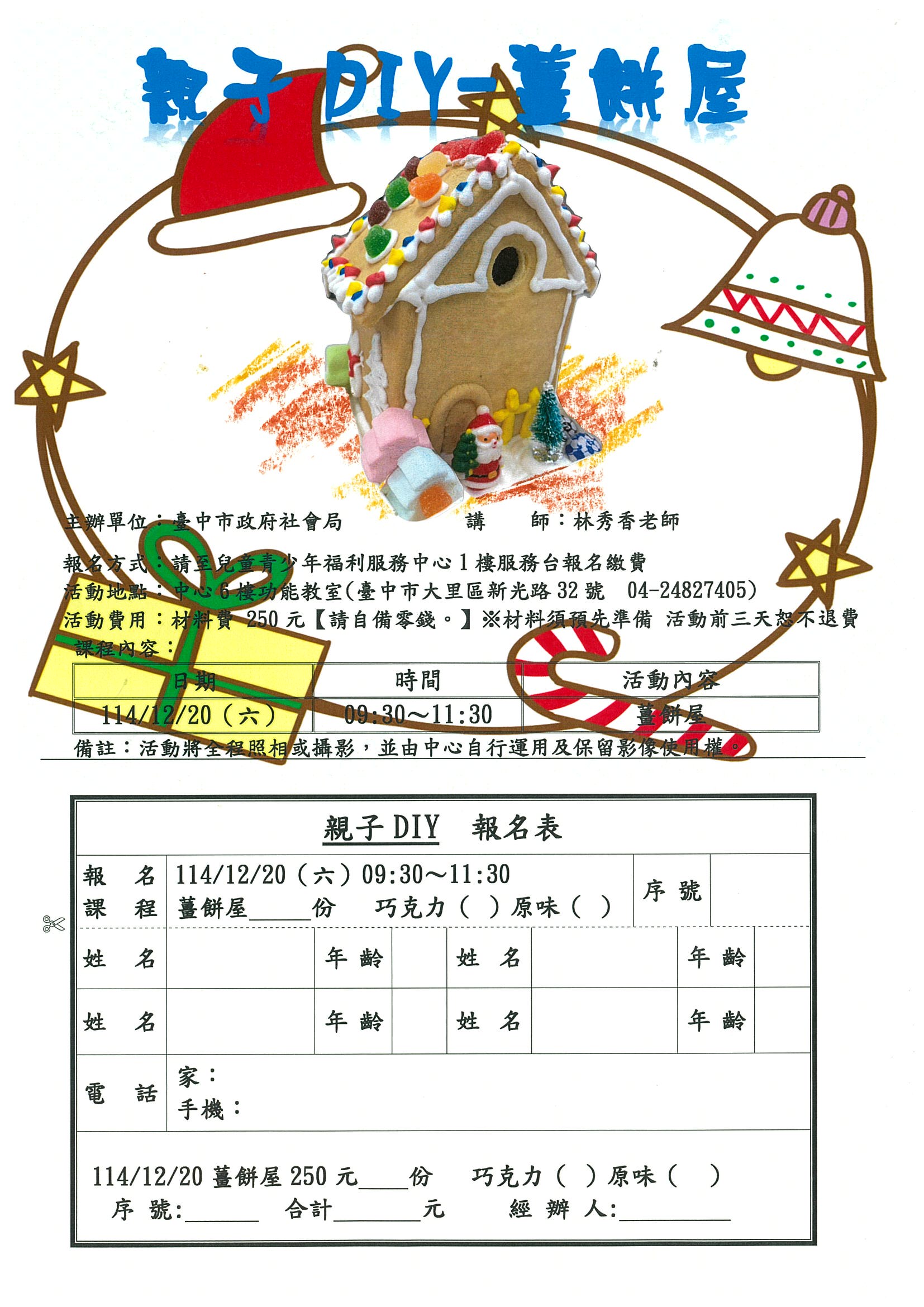 👪【親子DIY】114年11月15日 🏡薑餅屋🏡 👉開始報名囉!