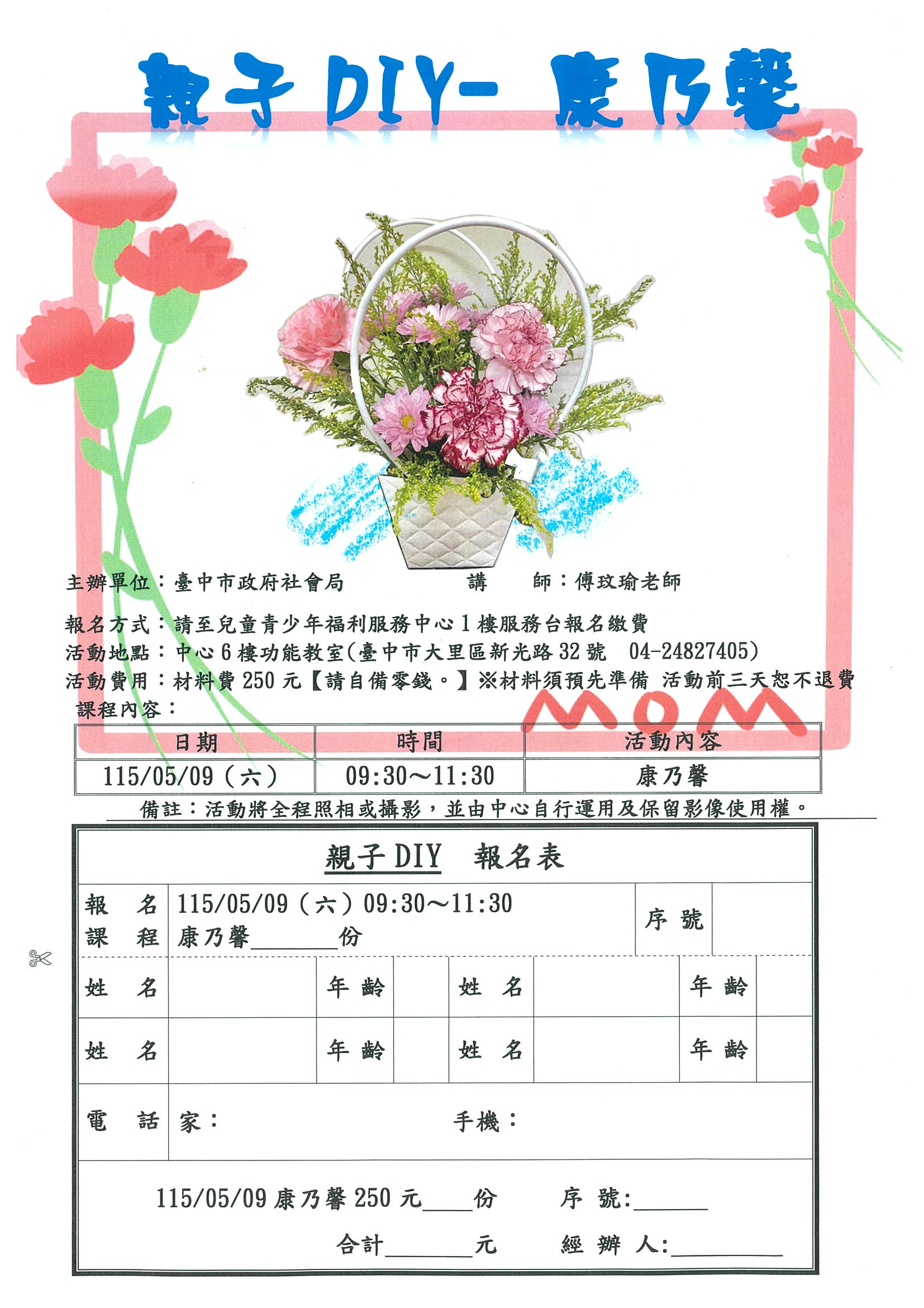 👪【親子DIY】115年5月9日 💐 康乃馨 👉開始報名囉!