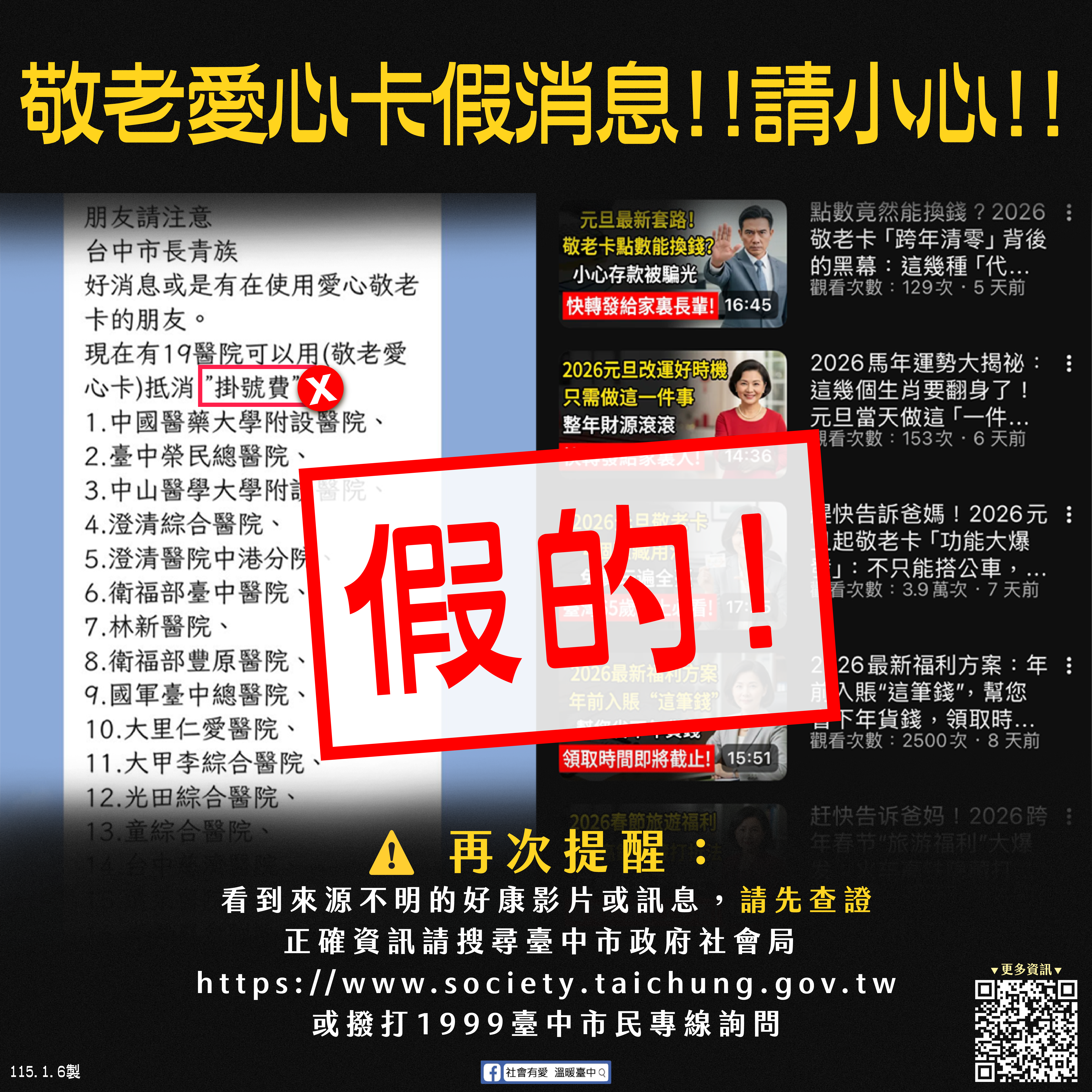 🚫臺中「19 家醫院」可用敬老愛心卡折抵掛號費