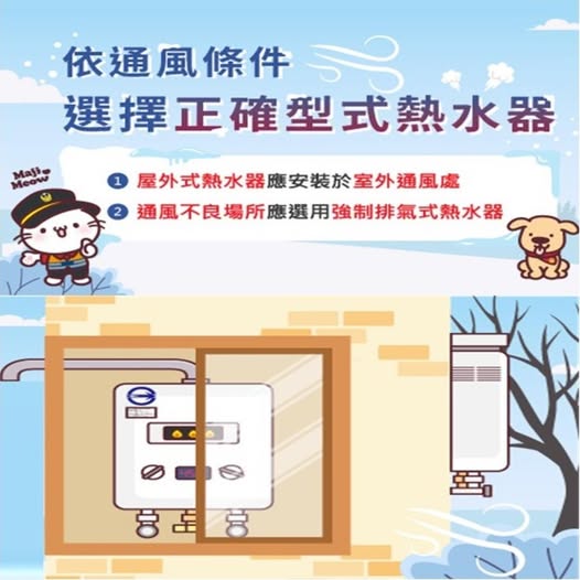 📢提醒大家:依通風條件,選擇正確型式熱水器