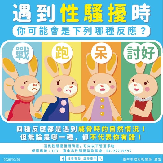 #性騷擾防治 #不是你的錯 #勇敢求助 #家庭暴力及性侵害防治中心 #尊重他人意願 #拒絕性騷 #勇敢說不