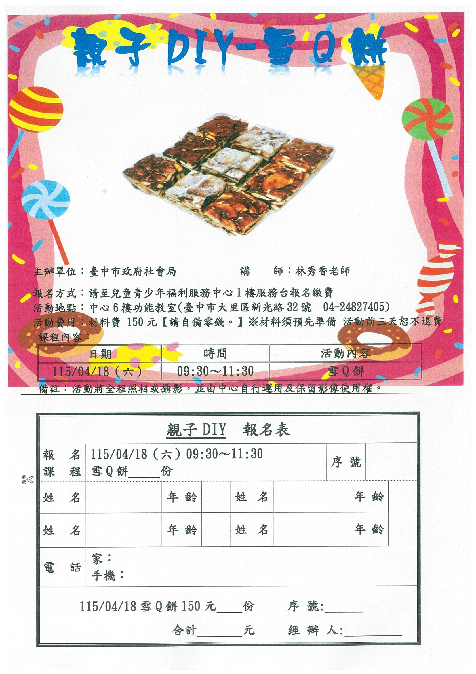 👪【親子DIY】115年4月18日 🍪 雪Q餅 🍪 👉開始報名囉!