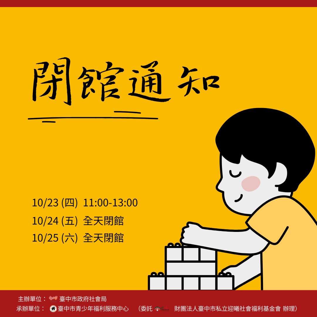 10/23(四)因辦理青少年業務聯繫會議 11:00-13:00 閉館