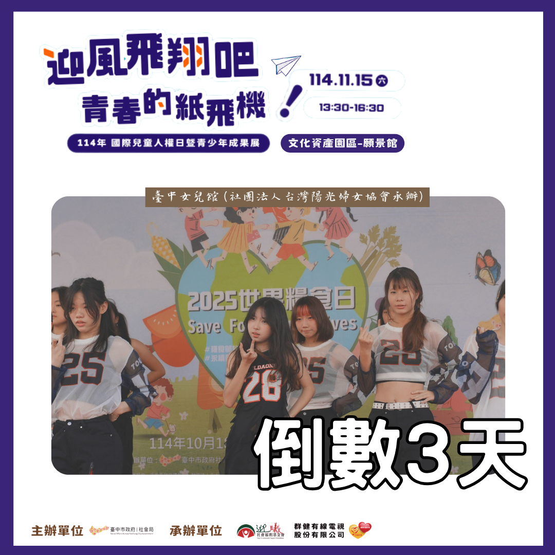 【一般公告】~114年國際兒童人權日暨青少年成果展~倒數3天