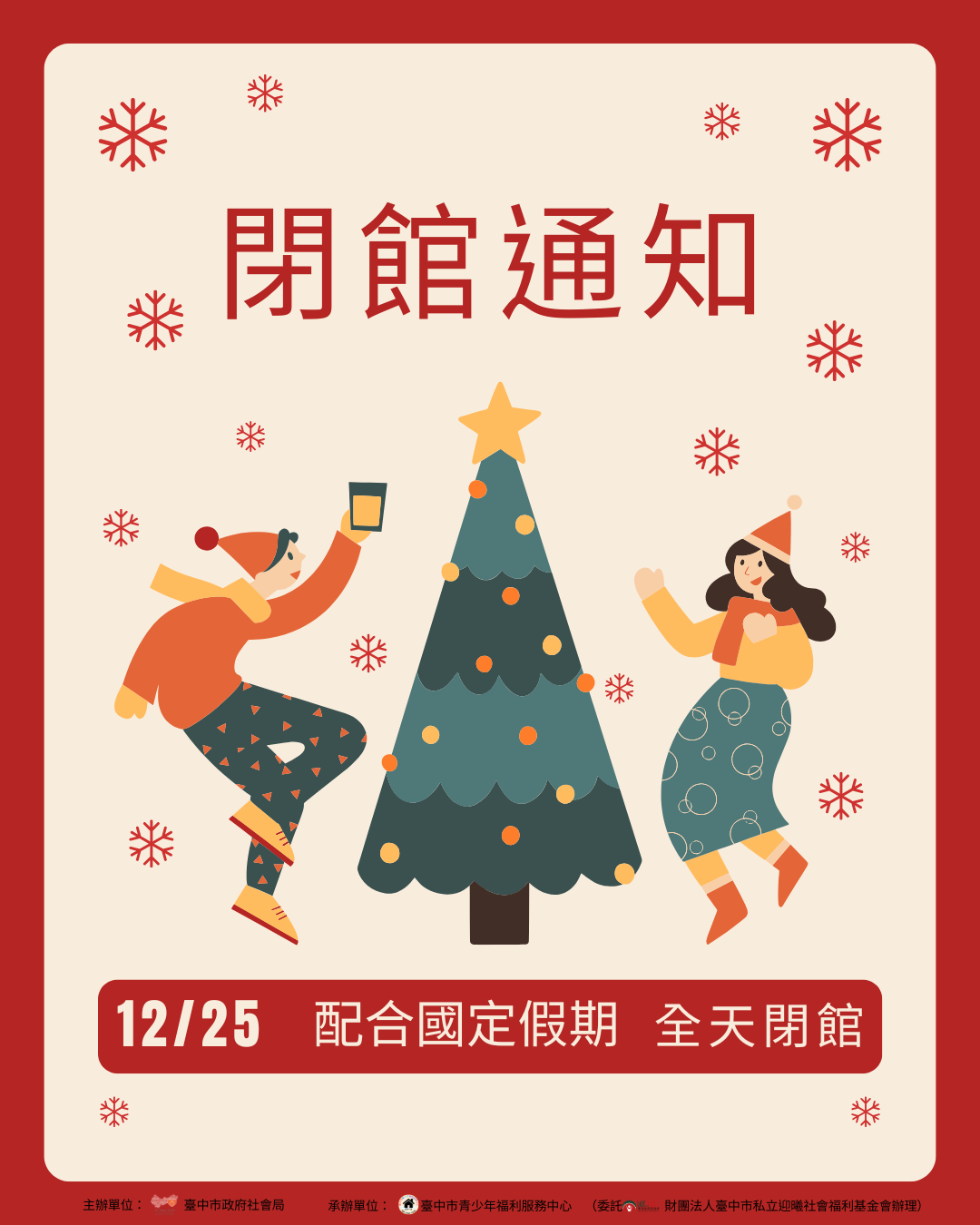 12/25(四)配合國定假日,當天閉館