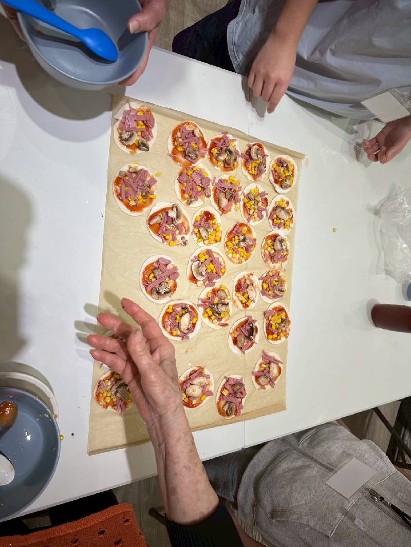 而青少年則帶著長輩嘗試製作西式的迷你Pizza,